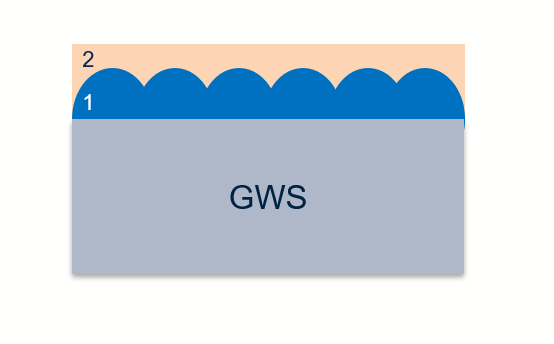 Die Basis bildet eine Hartchrombeschichtung mit einer speziellen Perlstruktur (1). Diese Struktur verleiht der Oberfläche eine höhere Härte und Verschleissfestigkeit im Vergleich zu herkömmlichen Chrombeschichtungen. Die Perlstruktur ermöglicht auch eine bessere Haftung des Topcoats (2) und verbessert die Langlebigkeit der Beschichtung.