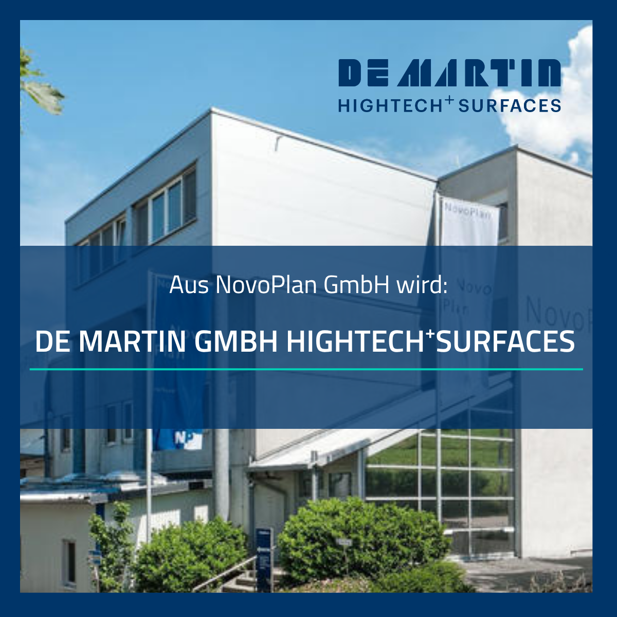 Im Zuge der Integration wurde die bisherige NovoPlan GmbH per 23. September 2025 in De Martin GmbH Hightech+Surfaces umfirmiert.